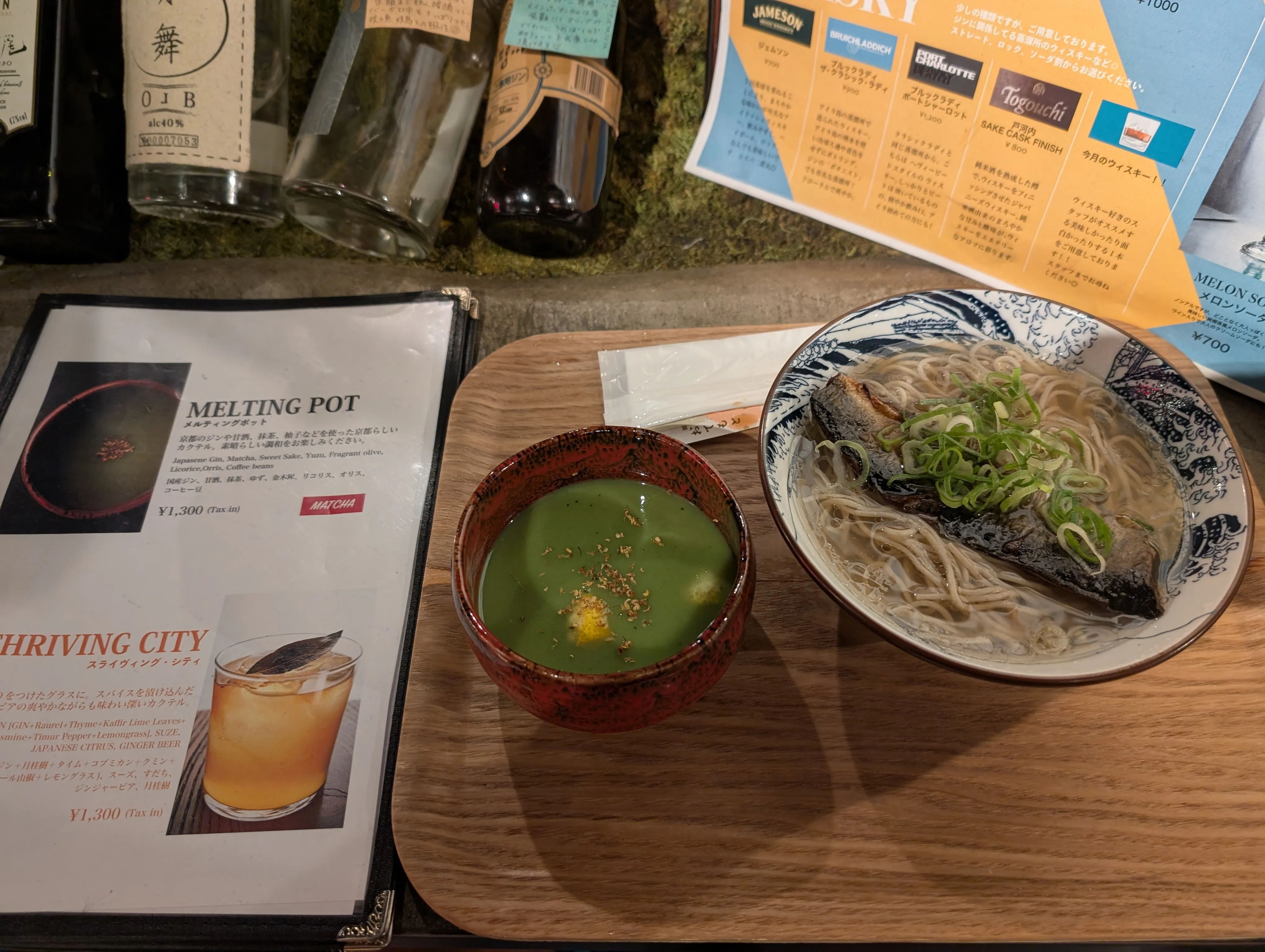 But Kyoto wasn't just about the sit-down meals. I stumbled upon two amazing bars that became highlights. Zam Zam Bar in Pontocho Alley wasn't just about the drinks; chatting for hours with Stefania, the bartender, about everything from travel to the Japanese economy was the real treat. "The roots of all evil" became my go-to spot for my last three nights. From a nutty matcha-yuzu-gin cocktail with Herring Soba to whisky chats with Rae that led to generous pours, and a hilarious night with a fantastic UK couple, Edd and Lucy, this bar had it all. We covered veganism, life, property, and future Japan plans – can't wait to see them again!