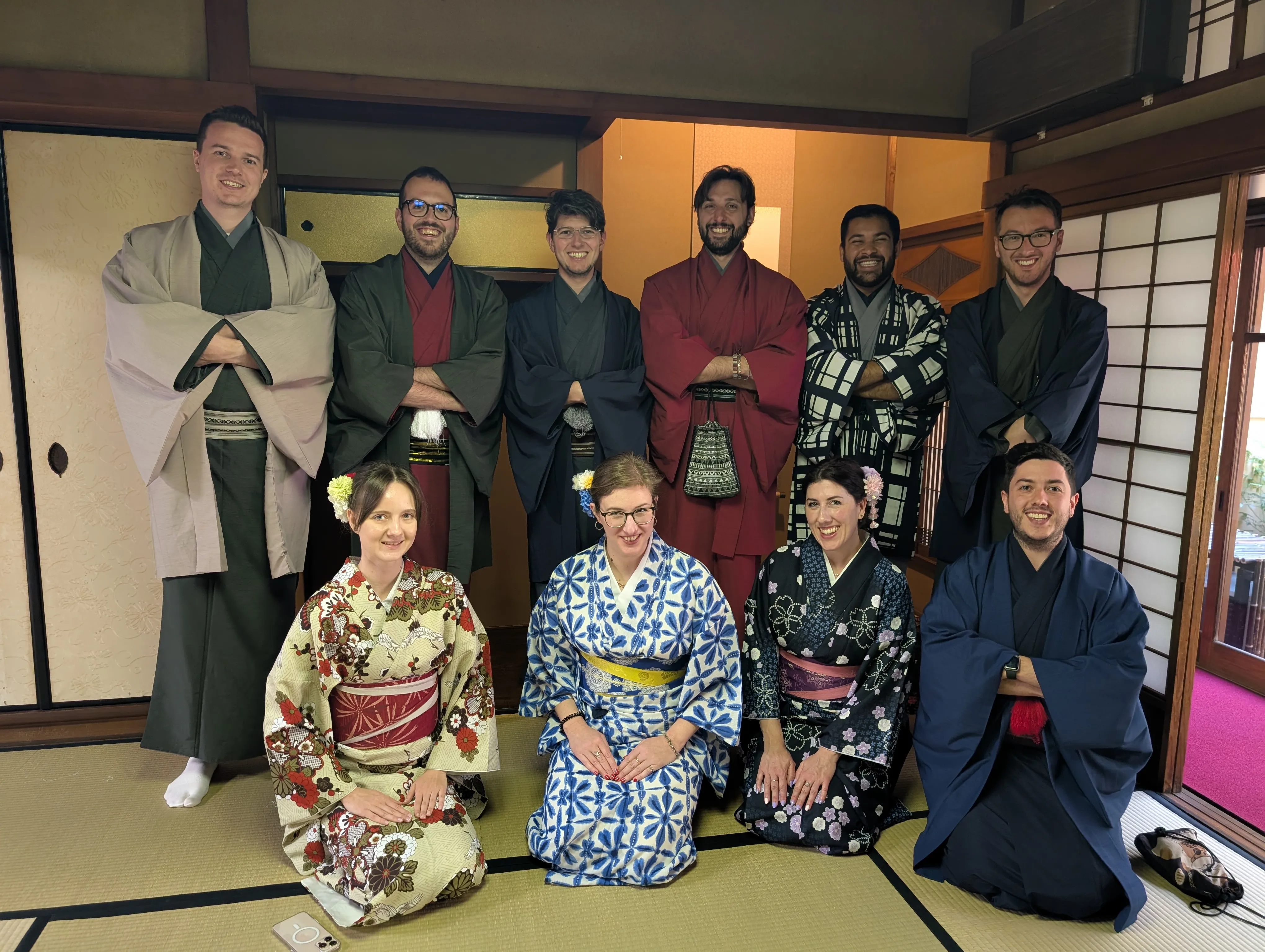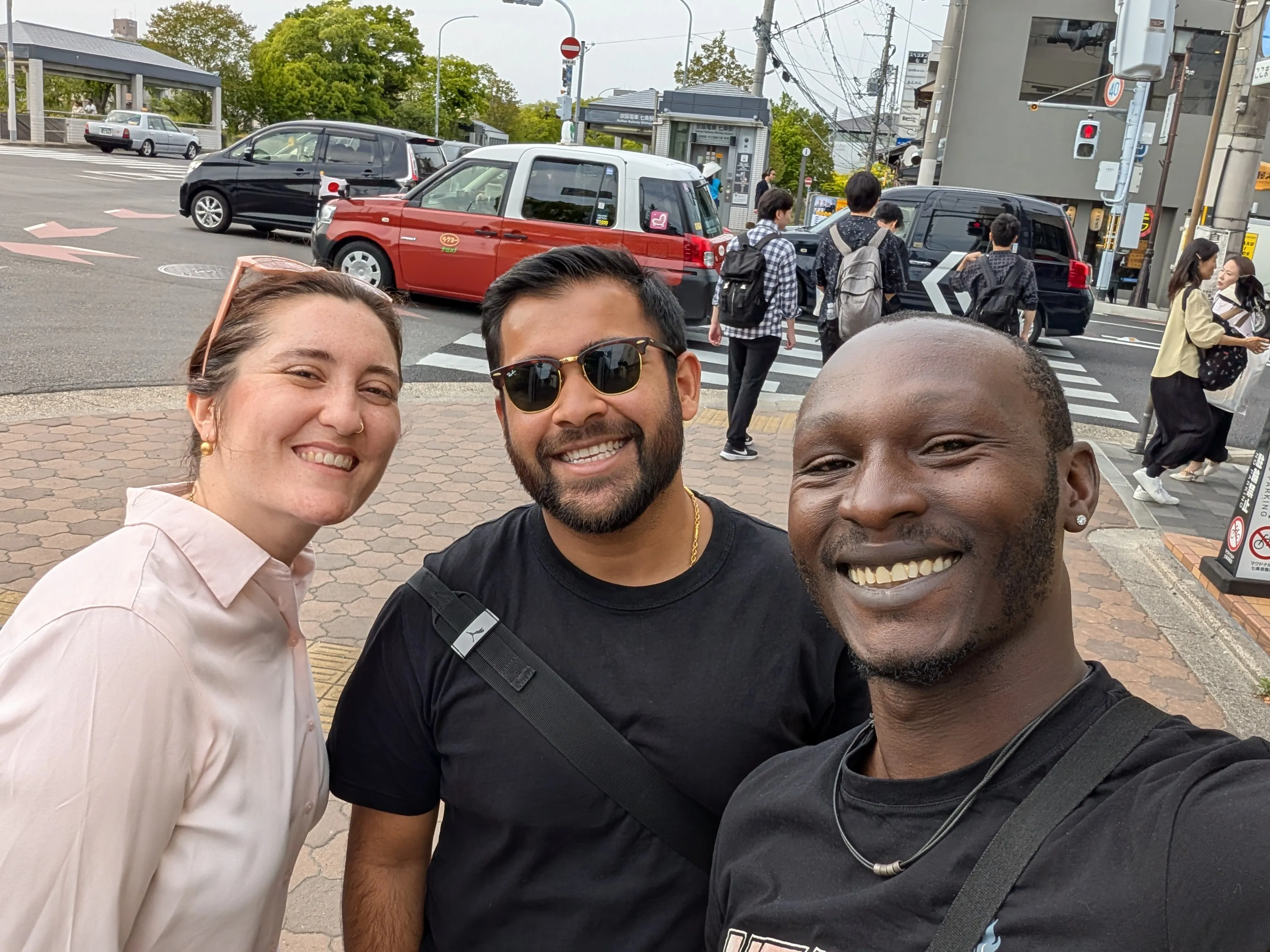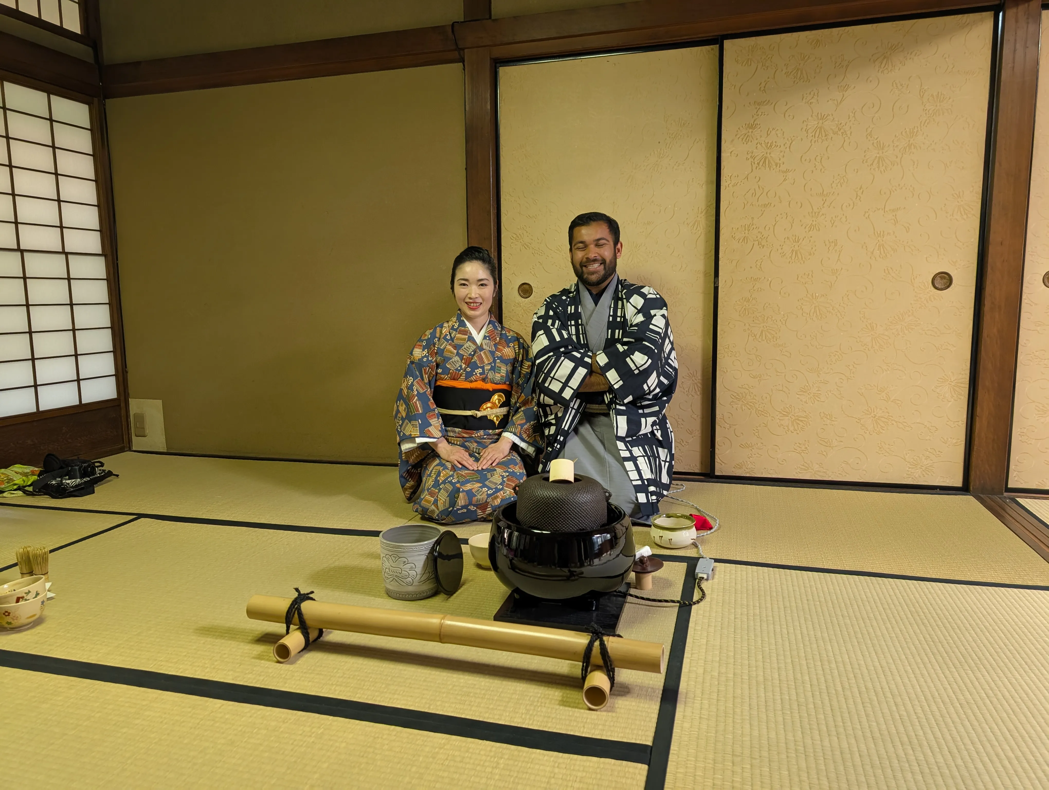 Time for some zen vibes! I went to a traditional Japanese tea ceremony, and yes, there's a pic somewhere of me in a kimono! Sat with a tea master and this unique group – a Russian couple, some folks from Italy, and Jean-Claude and Clara from Ivory Coast. We learned about the whole history, how it came from China and is super tied to Zen Buddhism. Then came the quiet time (meditation!) and this cool ritual of cleaning everything before we got to whisk our own matcha. Honestly, I never thought I'd like pure matcha, but hey, Japan surprises you! Afterward, I chatted with Jean-Claude, we swapped contacts, and went our separate ways. I grabbed a quick bite and went for a stroll along the Kamo River (love that spot!). Forty minutes later, who do I see on a bridge? Jean-Claude and Clara! So, I joined them to check out Sanjusangendo temple with its crazy 1001 Kannon statues. And get this – Clara used to teach in villages in India super close to where I grew up, for a charity I support! Talk about a small world moment.