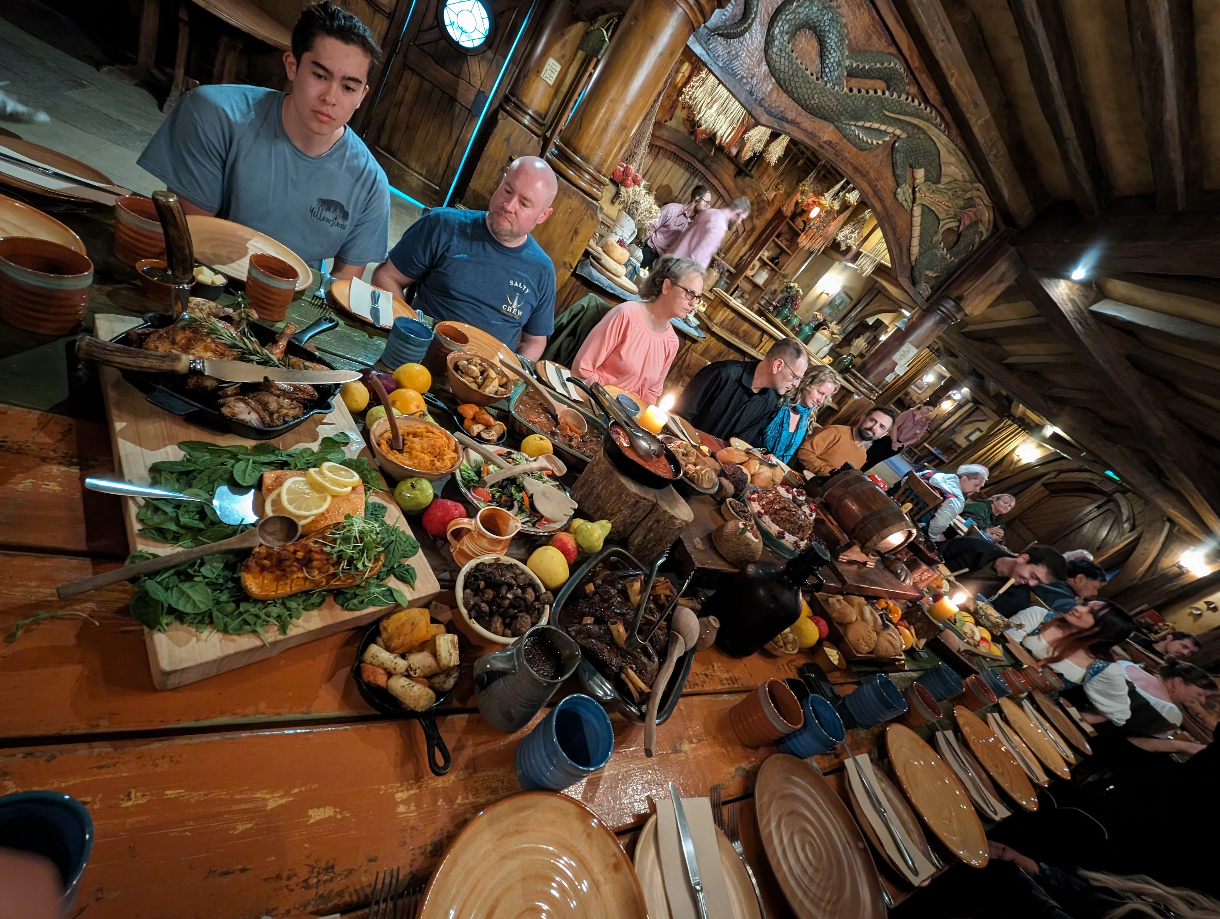 And laugh we did, and eat and drink! Just when we thought it couldn't get any better, it did. The evening banquet, a.k.a the feast, was absolutely massive and is up there with some of the best foodie experiences I've had. There were 48 of us, distributed into a dozen each on four tables. And the food just kept coming, it was unfathomable! Five types of meat, fish, bread, roasted vegetables - you name it, they had it. And everything was cooked to perfection, which we learned later was all overlooked by one head chef. After an hour of tireless feasting, we were gently escorted out for a few minutes so the tables could be cleared. Now, it was time for dessert. Fruits, tarts, puddings, custard. Once again, it was almost as if they were showing off at this stage. But, guess who is not complaining ๐ True story: Our end of the table was deemed the winner - The 5 of us had totally demolished everything put in front of us ๐