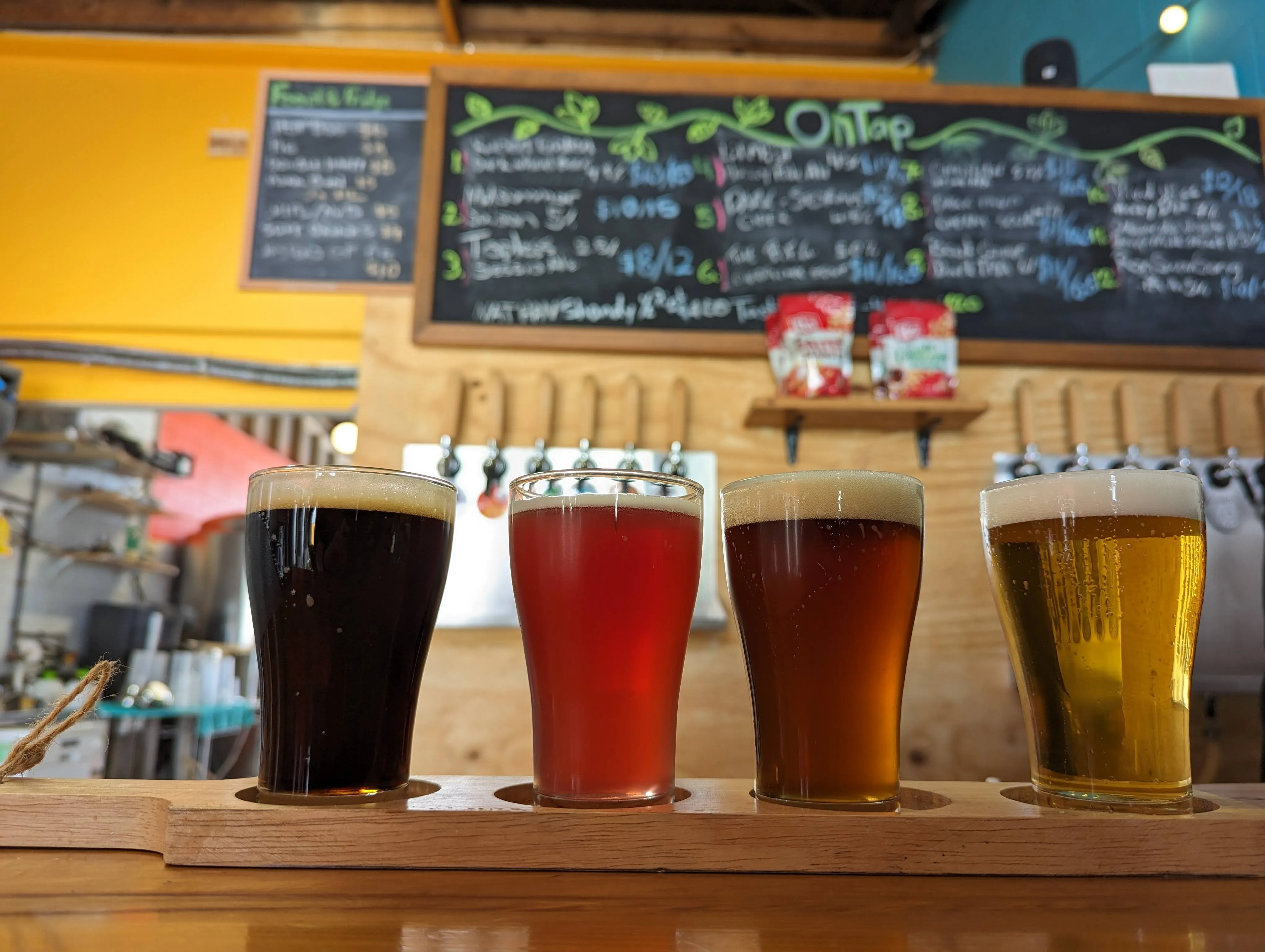 After a hot shower, we headed next door, to Canyon Brewing. Same scenery, minus the paddle, add some hot chips and a crisp fruity pilsner - there could not have been a better way to follow up the exercise!
