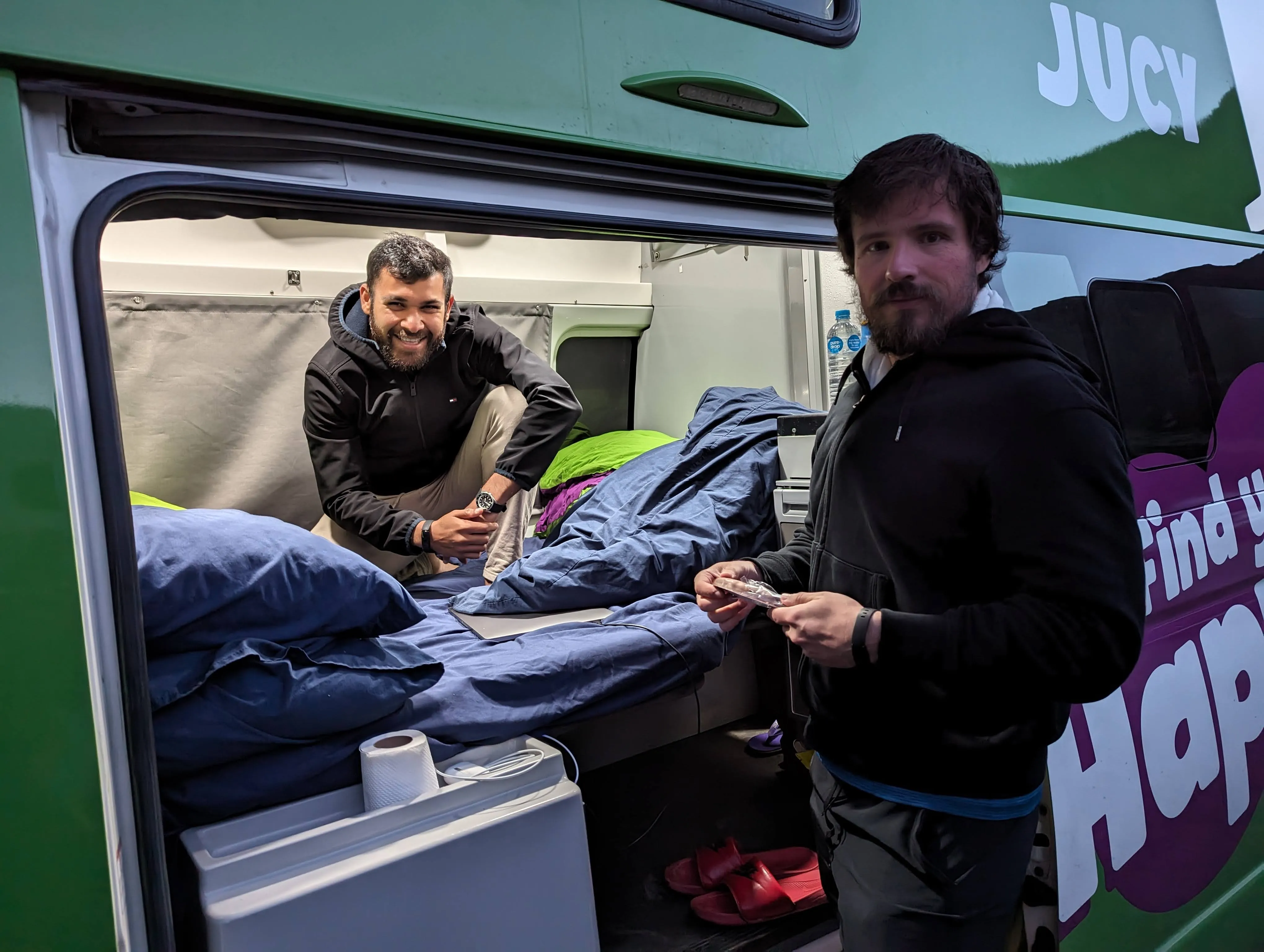 At first, I was actually surprised to see that it was a tad smaller than I'd imagined. For something with a self-contained toilet and kitchen, it was quite small - roughly the same size as a Ford pick up truck. At first, it was quite challenging to navigate the storage and bedding and truth be told, it was a bit congested for three fully grown adults. But, after a few days, you start to understand the layout and work better with it. With a full water tank, gas bottle and enough fuel, you are good to go! And, for an extended camping trip in a country unlike NZ's South Island, I would still prefer a self-contained vehicle like this one.