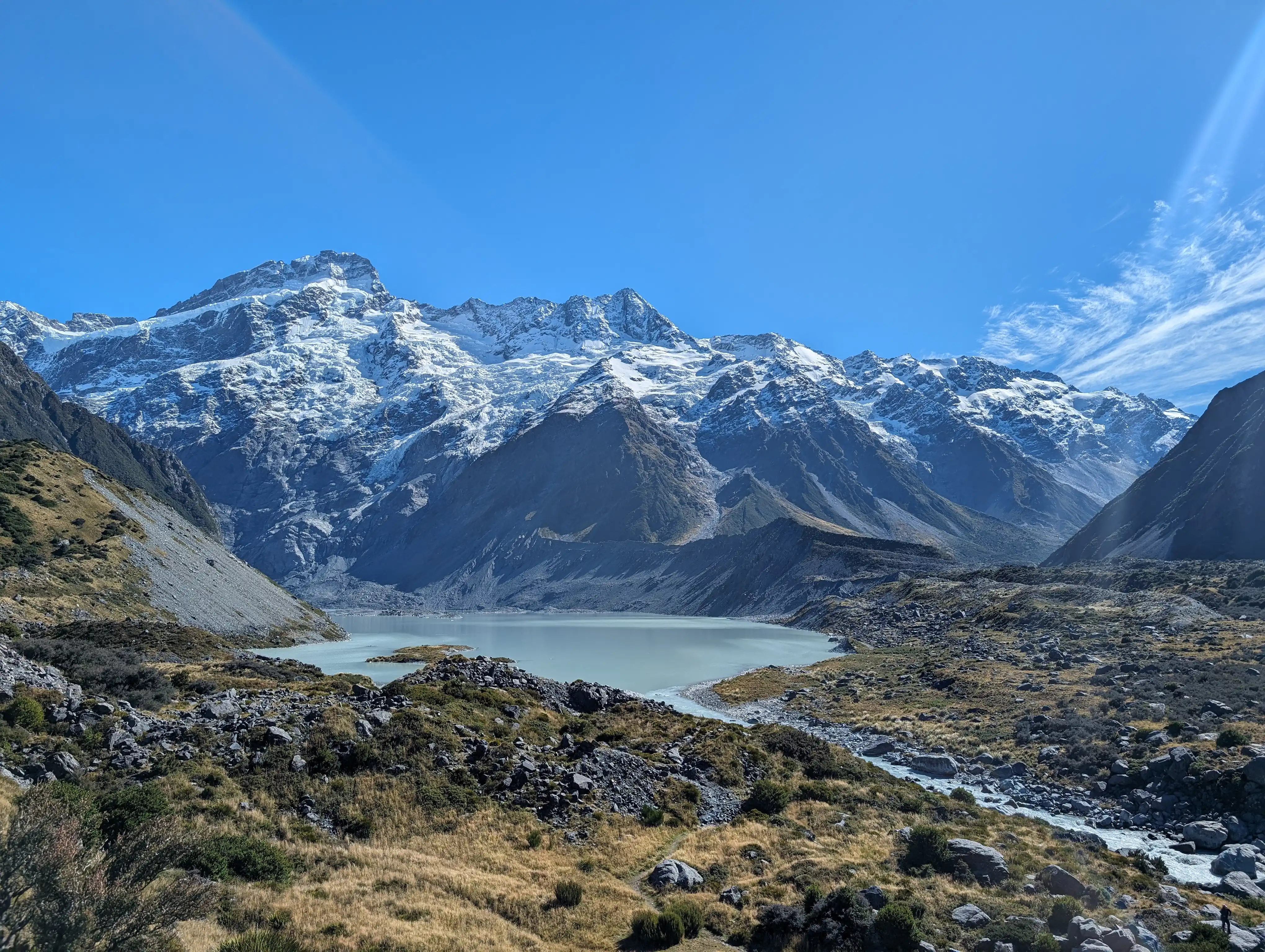 One of the most popular hikes walks in New Zealand is the Hooker Valley Trail. An easy walk suitable for people of all ages takes you on a soothing journey - crossing footbridges over glacial lakes and rivers, getting closer to the base of the mountain with every step! If you are camping at the doc site, you could do the trail as a post-lunch walk or even a morning walk. If you are lucky enough (like myself), you will be doing this on a clear day giving you the opportunity to see all the creaks spawning from ice melting on mountain edges and the glass like water with a blue tint. Writing about this almost 2 weeks later still gives me goosebumps - what a beautiful planet we live on.