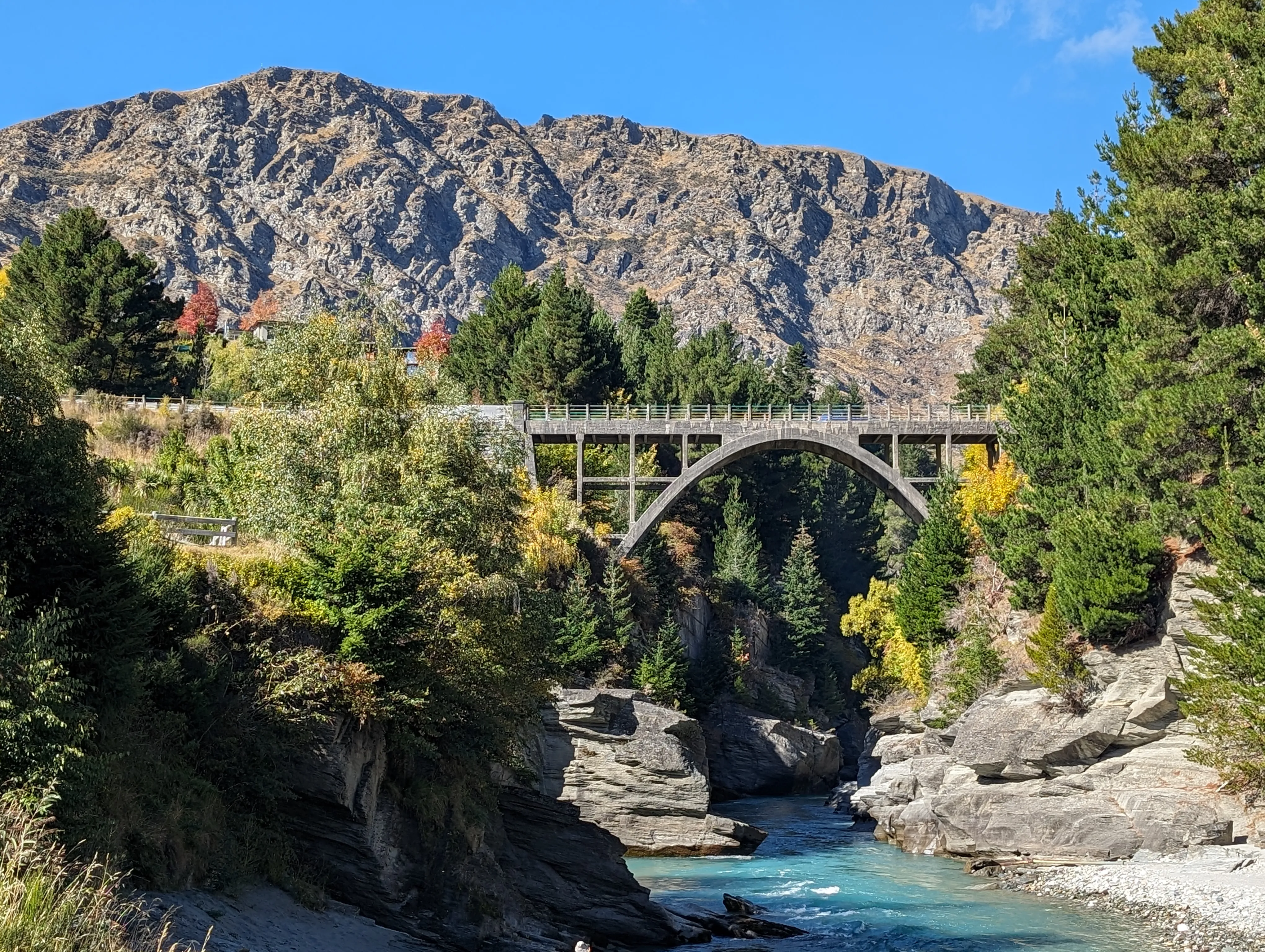 Everything comes at a price. On this day, (fortunately) the price was fear. Skippers Canyon Road is the most dangerous road in New Zealand and one of the top 10 in the world. Almost 20kms of hand-carved road, carved by miners over 140 years ago, it is too narrow, with no guardrails, and the drop-offs leave absolutely no room for error! Naturally, this is a tourist magnet and the only way to access to bungy jumping operations or white water rafting.