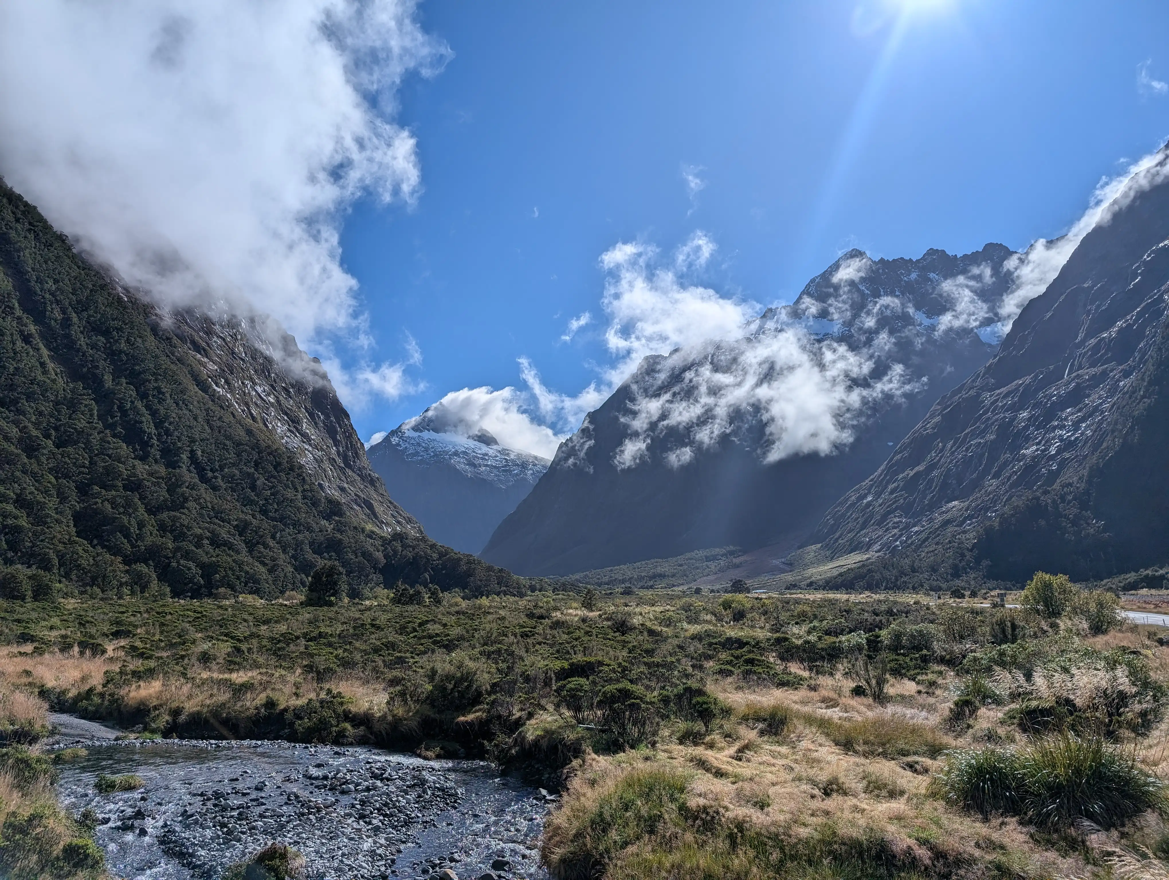 I drove close to 2000 kilometers in the campervan in just under 10 days. That is over 20 hours of driving. And I am not sure if I have ever driven this long without virtually any sign of road kill! In fairness, I did some roadkill in the last couple of days (mostly rats and possums) but otherwise, I was surprised to see no other roadkill. Initially, I was happy to see this. However, I later found this to be closely related to a general lack of mammals and native animals in New Zealand. Now, I am not sure how to feel about this. I hope to see more species introduced to this beautiful country. Only two months ago, I was driving down the 99 bends down to Tasmania's Queenstown. And now, I have driven close to what feels like a thousand bends in New Zealand. Be it next to Lake Wakatipu coming in and out of NZ's Queenstown (different to Tasmania) or Lake Te Anau on the way to Milford Sound, you can see the pearl-like glimmer of sunlight over ripples of blue water! โ๏ธ Other times, you are driving up (and down) winding roads to Fox Glacier, next to the Tasman Sea, and you can find yourself chasing the snowy peaks of Mt Cook and Franz Josef ๐๏ธ The roads in South Island are purpose-built for a magical drive with nonstop jaw dropping views - on a sunny day with clear skies, you can get high on the peace, calm and beauty alone. Just when I thought it couldn't get any better, Homer Tunnel - 1.2km-long tunnel through solid rock - proved me wrong.
