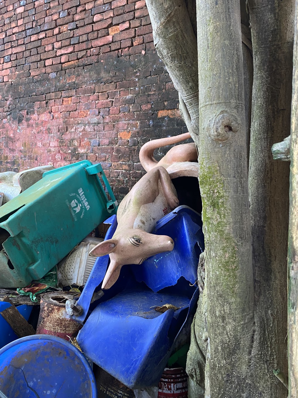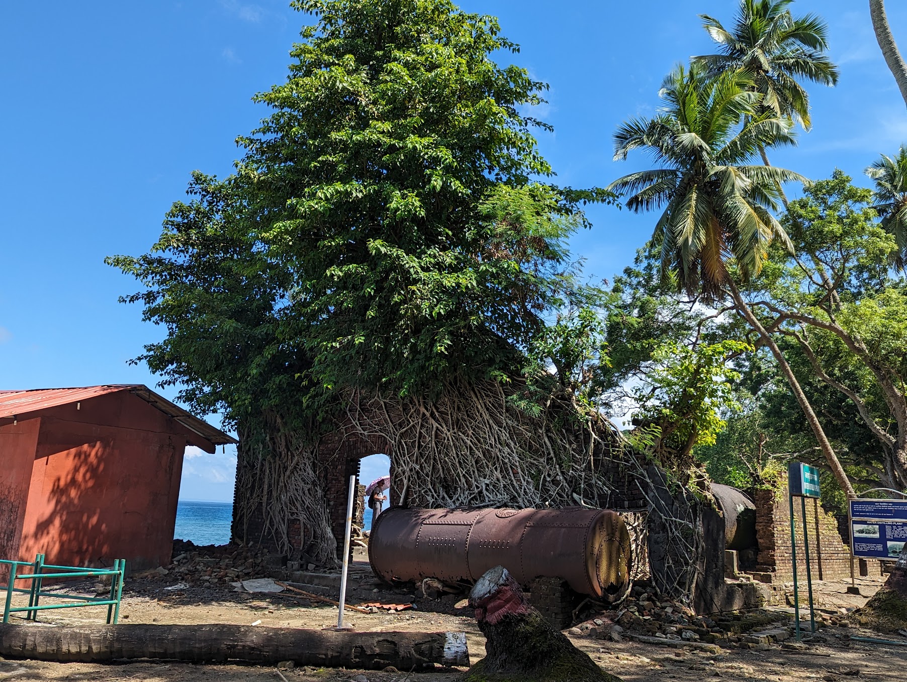 In Ross Island (now called Netaji Subhashchnadra Bose Island), we saw an extraordinary amount of deers, literally from the moment we got off our ferry! The deers crowded around coconut stalls for leftover coconut cream and for the first few minutes, it was kind-of scary! While most of the ex-Japanese colony was covered in picturesque remains of historic buildings, one unfortunate (and somewhat funny) random occurence was that of a life-sized plastic kangaroo, in the trash!