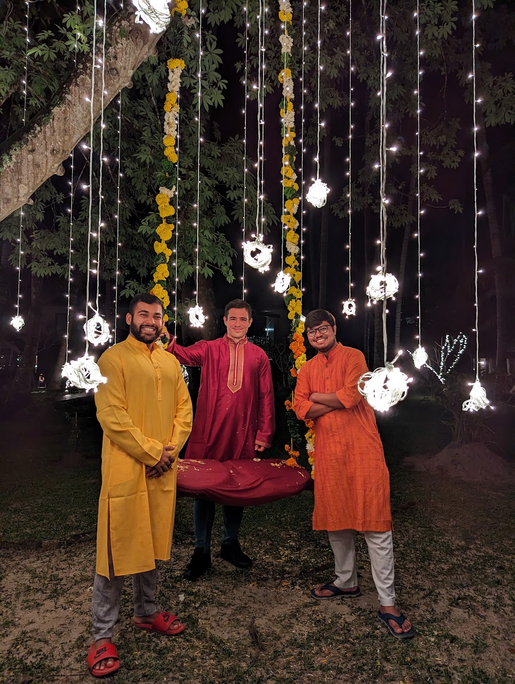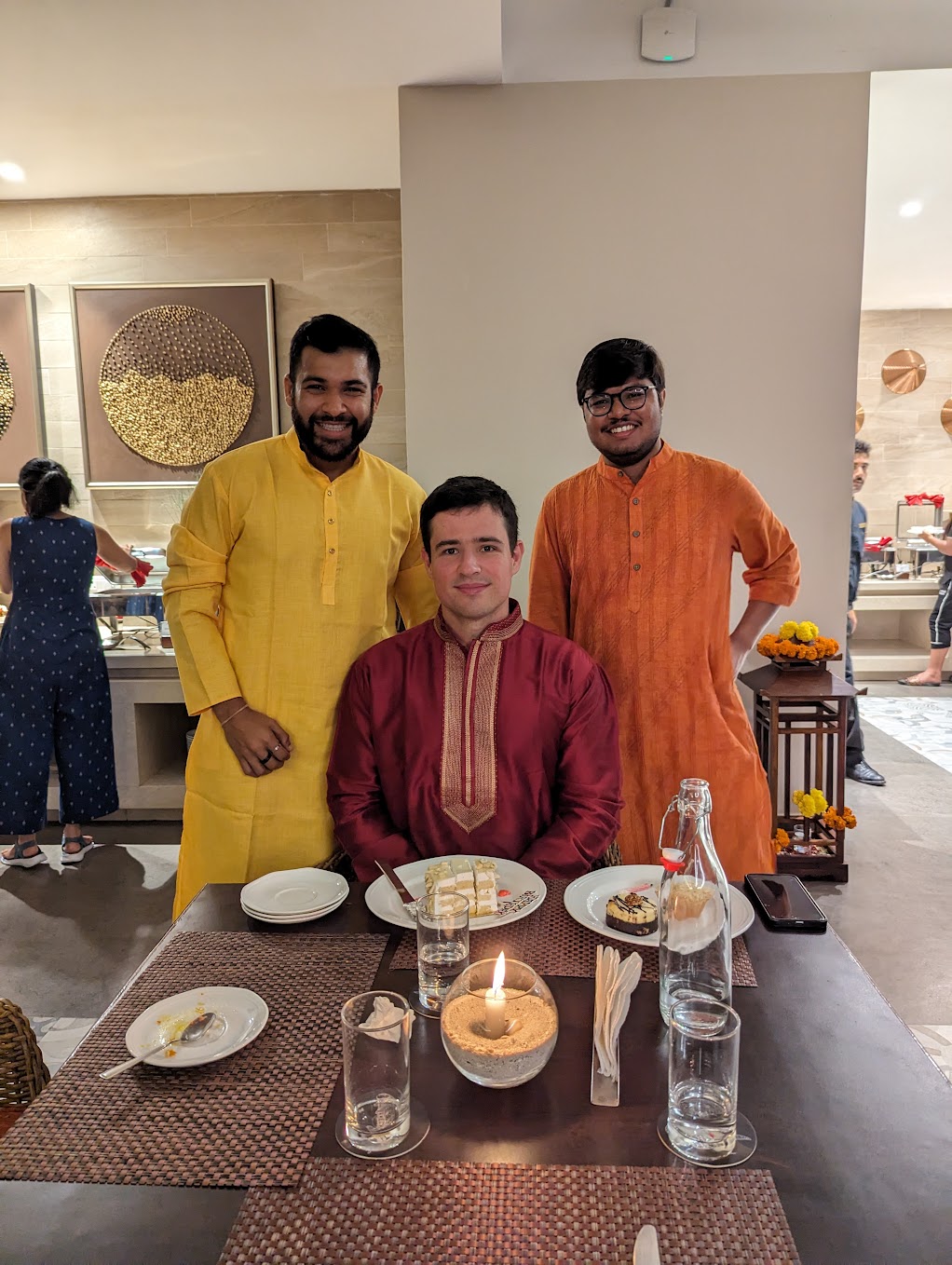 On the day of Diwali, we had an elevated experience at Sea Shell resort in Havelock. We dressed up in traditional clothes and visited the restaurant. Upon getting there, we were overwhelmed by the large selection of delicacies including Diwali sweets such as "gajar halwa" (made from carrots) and "gulab jamun". It was also Michal's birthday so to compliment the diwali festivities, I also arranged a small surprise. As we finished enjoying a delicious buffet dinner, the servers brought a few delicious pastries to our table with candles and we sang the birthday song and took some photos đ